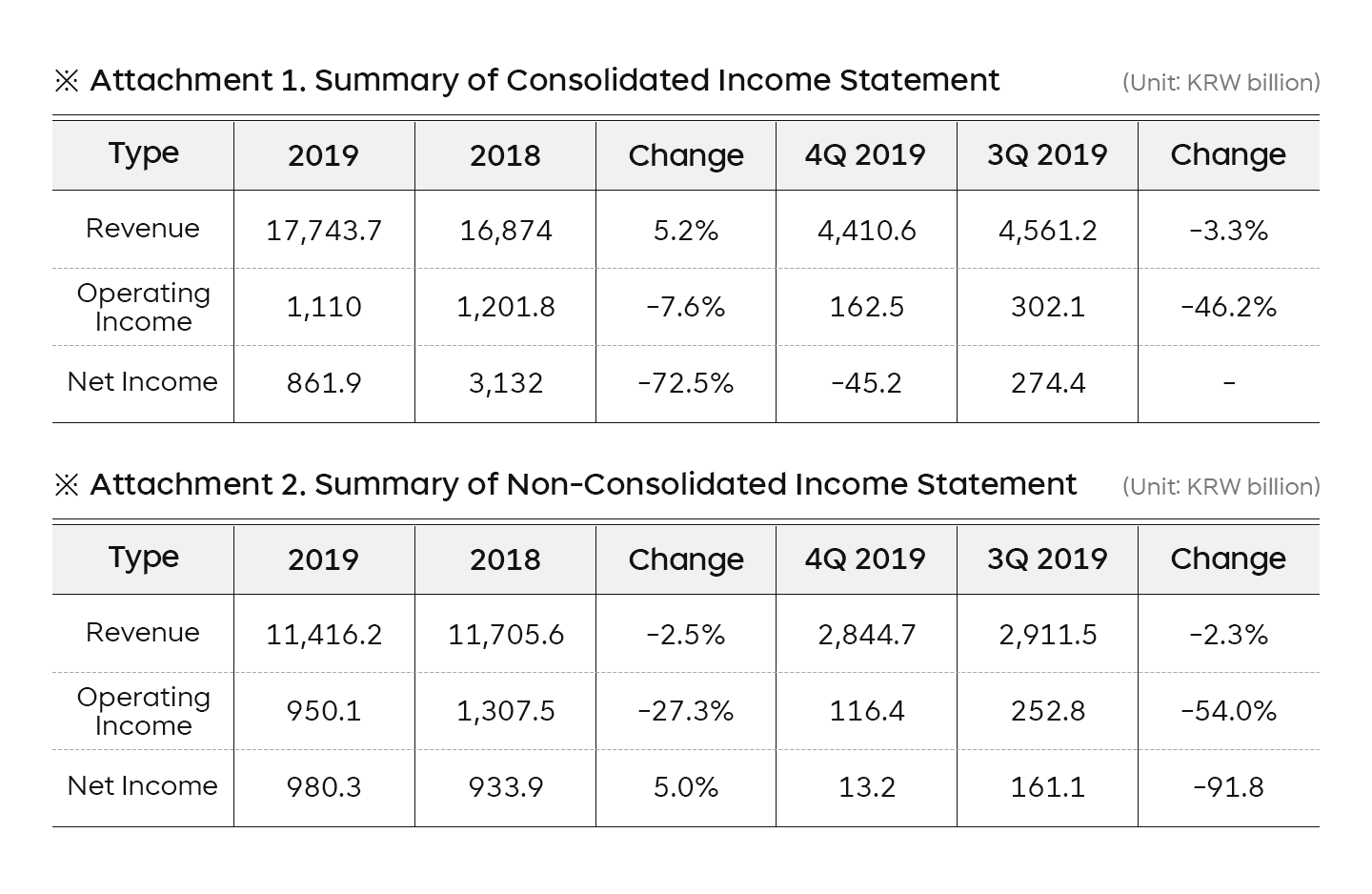 • Posts revenue of KRW 17.744 trillion, operating income of KRW 1.110 trillion, and net income of KRW 861.9 billion