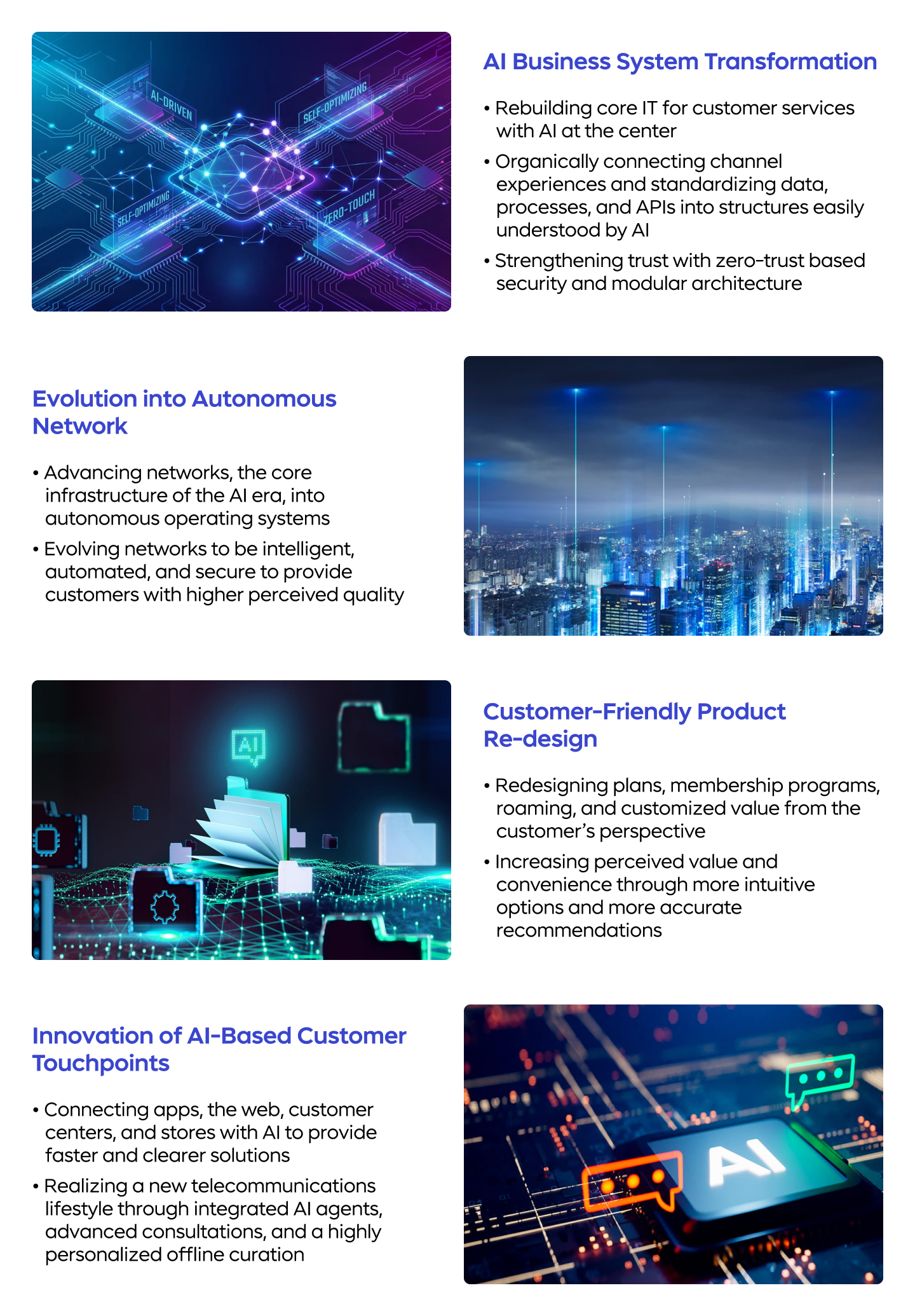 SKT is redesigning its products to be more customer-friendly through AI-driven business systems and network innovations. The company provides a next-level daily life for its users by delivering new AI-powered telecommunications experiences.