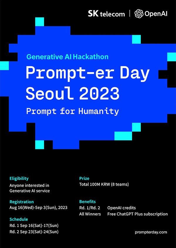 • SKT and OpenAI will co-host an AI hackathon titled “Prompter Day Seoul 2023” in September 2023 under the theme “Prompt for Humanity.”