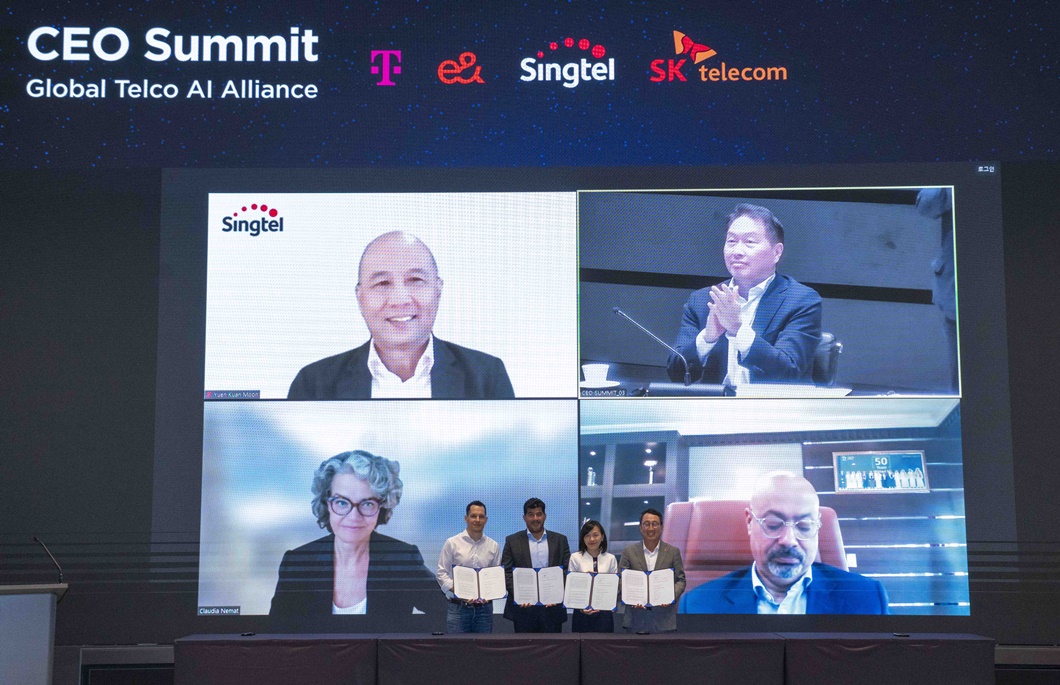 They signed a Multilateral Memorandum of Understanding (MOU) for cooperation in the AI business. The Multilateral MOU signing ceremony took place in Seoul, Korea with the presence of key executives of the four telcos who attended online or in-person, including Claudia Nemat, Board Member Technology and Innovation at Deutsche Telekom, Hatem Dowidar, Group CEO of e&, Yuen Kuan Moon, Group CEO of Singtel, Chey Tae-won, Chairman of SK Group, and Ryu Young-sang, CEO of SKT.