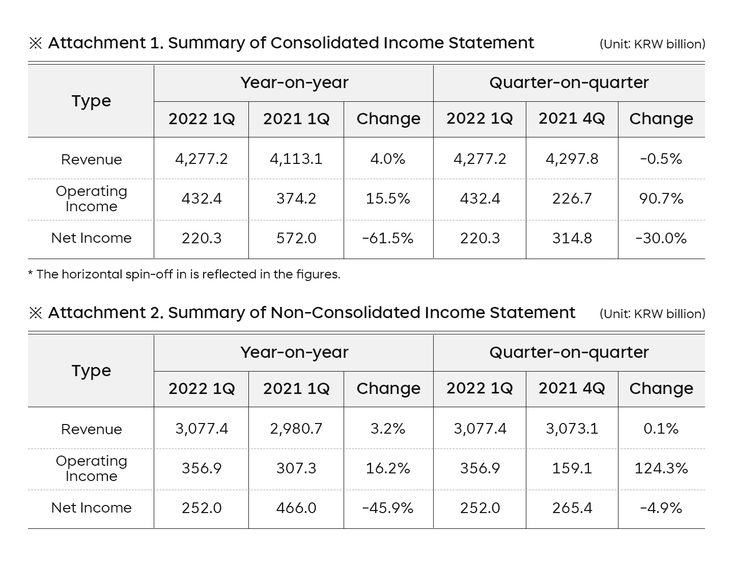 ※ The conference call in regard to SK Telecom’s 1Q 2022 earnings results can be heard via SK Telecom’s webpage on Tuesday, May 10, from 15:00 Seoul Time.